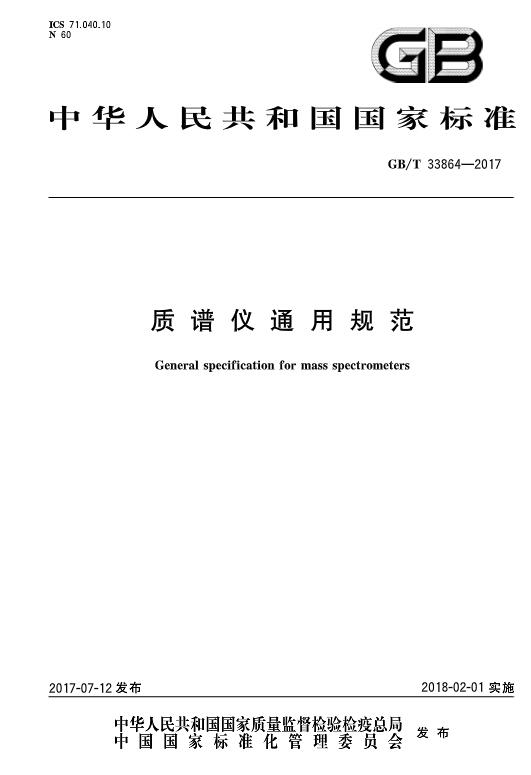 2017年8月9日,中國國家標準化管理委員會公開了《質譜儀通用規范》標準文本(標準號:GB/T 33864-2017),將于2018年2月1日開始實施。該國家標準的制定是各類質譜儀系列標準制訂工作的基礎,對質譜儀器性能測定標準化工作具有重要的推動作用。