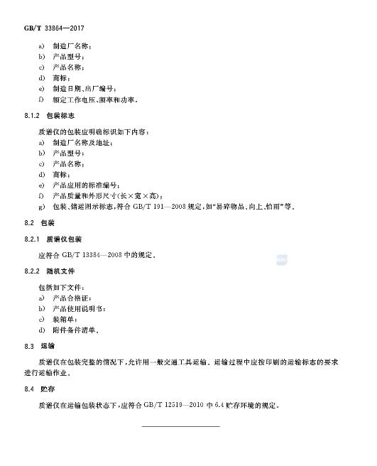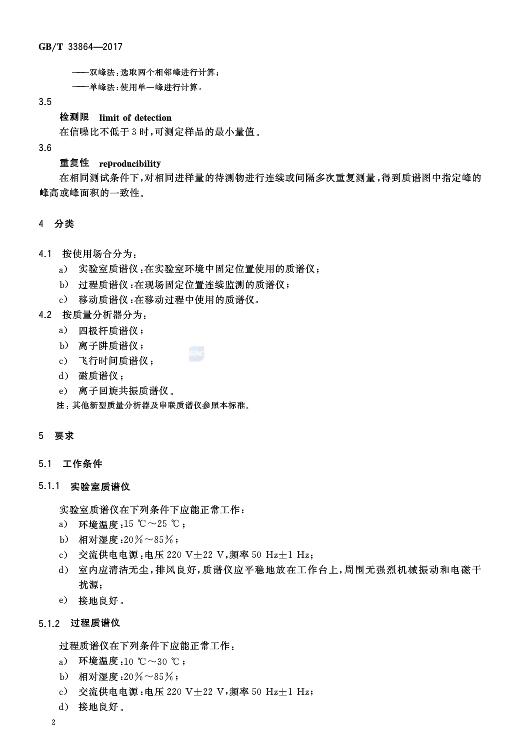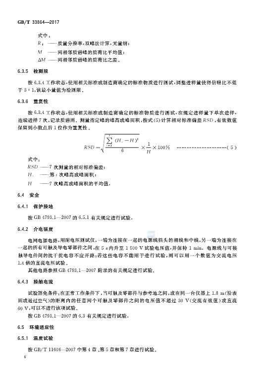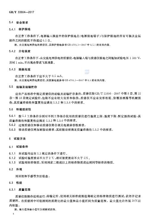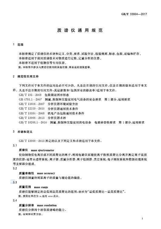 附《質譜儀通用規范》GB/T 33864-2017標準文本具體內容: