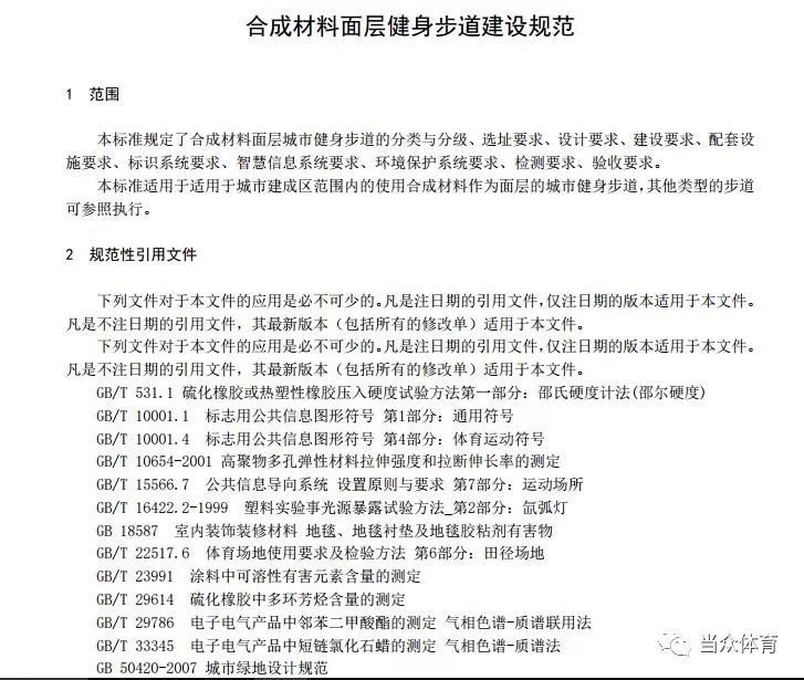《合成材料面層健身步道建設規范(征求意見稿)》內容如下: