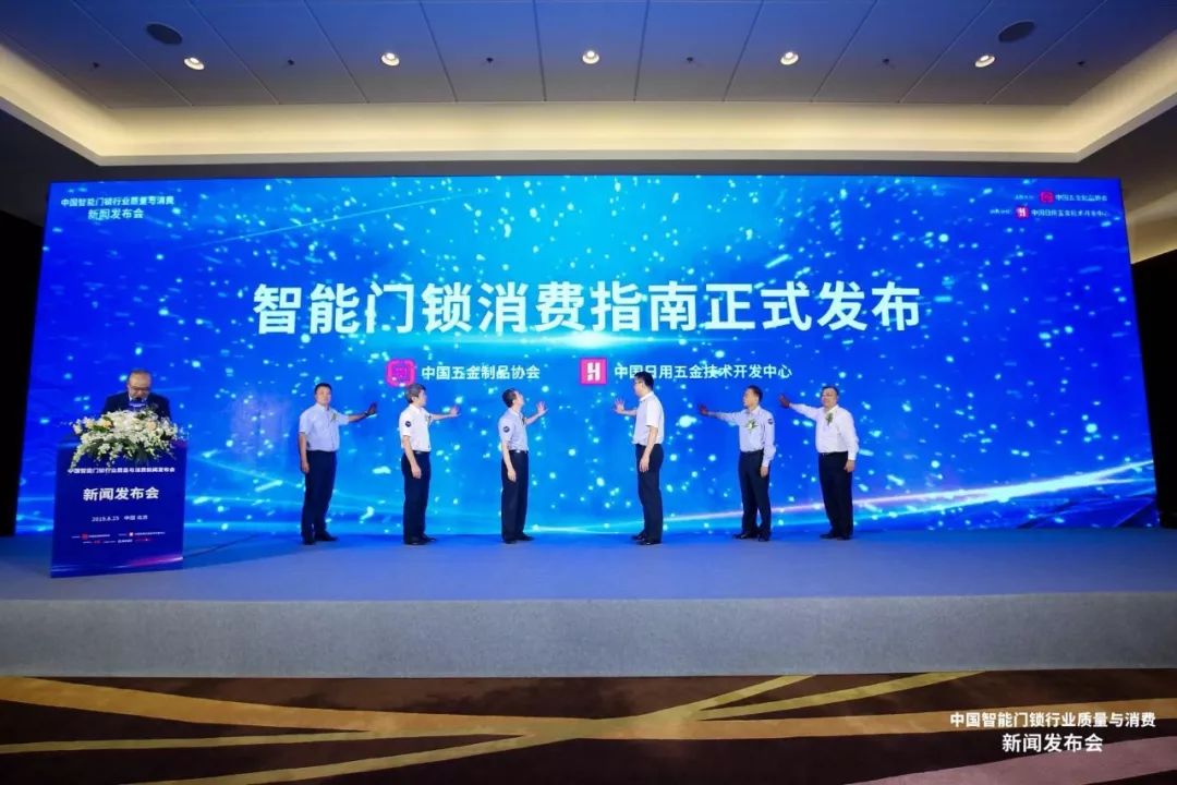為進(jìn)一步推動智能門鎖行業(yè)的健康、可持續(xù)、高質(zhì)量發(fā)展,8月25日,由中國五金制品協(xié)會主辦,中國日用五金技術(shù)開發(fā)中心協(xié)辦的“中國智能門鎖行業(yè)質(zhì)量與消費”新聞發(fā)布會在北京國家會議中心召開。中國輕工業(yè)聯(lián)合會秘書長杜同和、國家市場監(jiān)督管理總局質(zhì)量發(fā)展局質(zhì)量處處長高勇、中國五金制品協(xié)會理事長石僧蘭、中國五金制品協(xié)會執(zhí)行理事長張東立、中國日用五金技術(shù)開發(fā)中心主任畢智濤、清華紫光國芯微電子股份有限公司總裁馬道杰等有關(guān)領(lǐng)導(dǎo)出席發(fā)布會。京東、天貓、蘇寧、紅星美凱龍、居然之家等渠道代表,行業(yè)50余家骨干企業(yè)主要負(fù)責(zé)人以及近百家新聞媒體參加發(fā)布會。