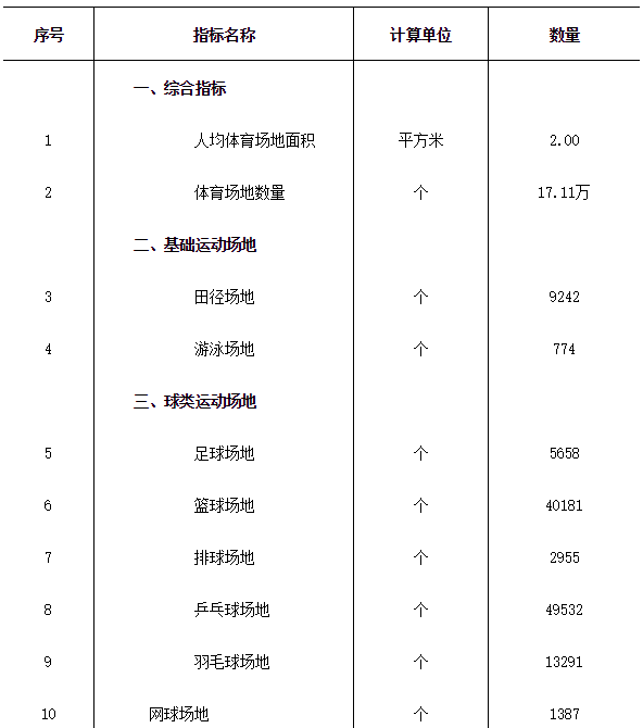 貴州省體育場地91579個,人均體育場地面積1.6平米