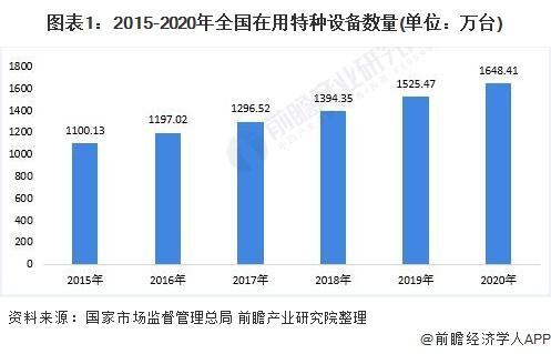 特種設(shè)備是指涉及生命安全、危險性較大的鍋爐、壓力容器(含氣瓶)、壓力管道、電梯、起重機(jī)械、客運(yùn)索道、大型游樂設(shè)施和場(廠)內(nèi)專用機(jī)動車輛等設(shè)備。2015-2020年,我國在用特種設(shè)備數(shù)量逐年增加。截至2020年底,全國特種設(shè)備總量達(dá)1648.41萬臺。