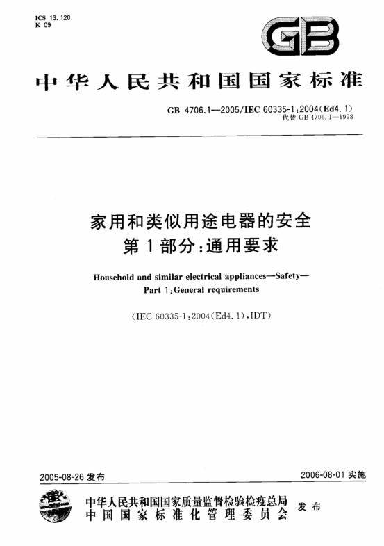 GB 4706.1-2005 家用和類似用途電器的安全 第1部分:通用要求