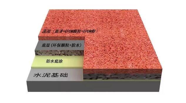 透氣型塑膠跑道材料是由橡膠環(huán)保顆粒為底層,聚氨酯顆粒與塑膠漿為面層鋪設(shè)組成的高性能塑膠結(jié)構(gòu)。具有使用壽命長、綜合性能適中、施工快捷等優(yōu)點(diǎn),它最經(jīng)濟(jì)、價(jià)格最低廉,而且不會有鼓泡現(xiàn)象發(fā)生,同時(shí)也減少了地基經(jīng)費(fèi)的投入。