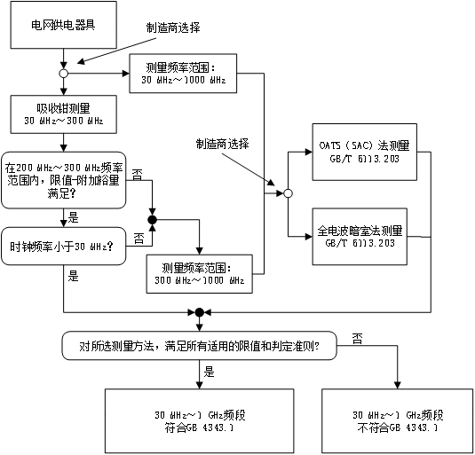 對于電網供電器具,根據圖10,制造商可以直接選擇30 MHz~1000 MHz輻射測量。