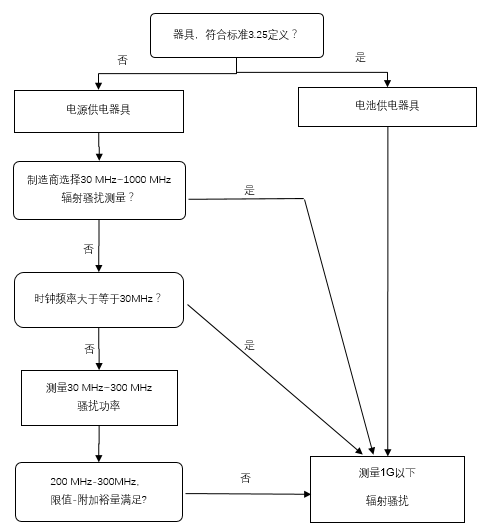 根據以上分析,結合實際,器具在判斷是否要進行30 MHz~1000 MHz輻射測量時,可參考下圖流程:
