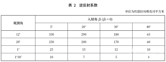 反光標志帶的逆反射系數應符合表2要求